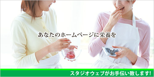 スタジオ ウェブはホームページ制作・デザインのお手伝い致します。 初心者で不安な方、アクセス数が増えなくてお悩みの方、お気軽にお問合せ下さい。 |